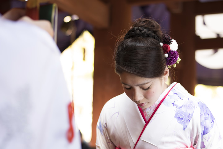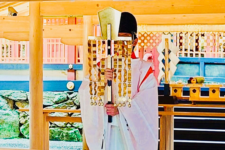祝詞の中で、お名前と願意を奏上し、祈祷札とお守りをお授けします。
