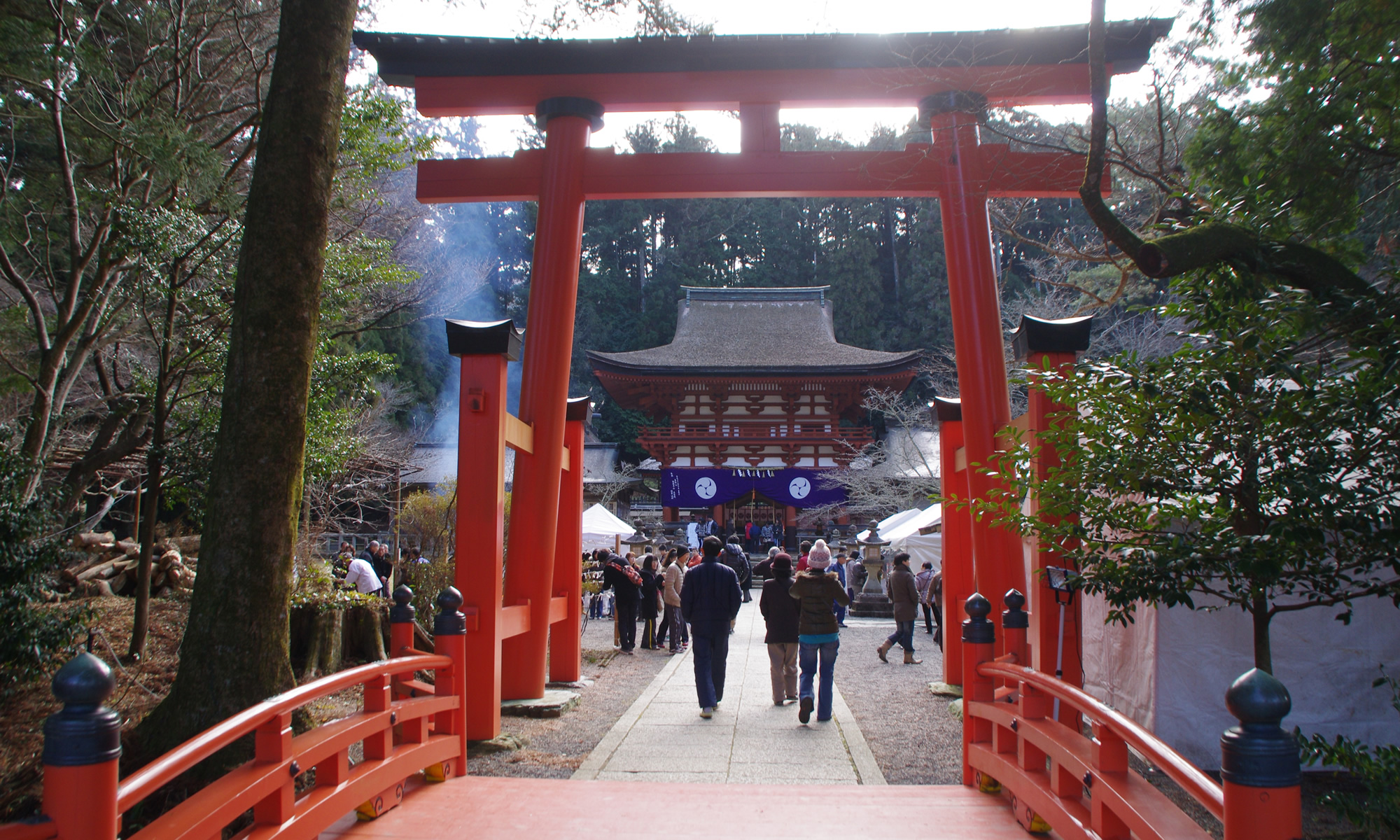 特別に国重要文化財の楼門内へお進み頂き、除災招福の金幣祓と新年の参拝を執り行います。
