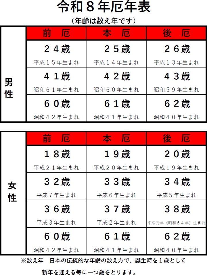 厄年に行う習わしとされますが、厄年にあたらない方も災難を除けるご祈祷としてお受けください。